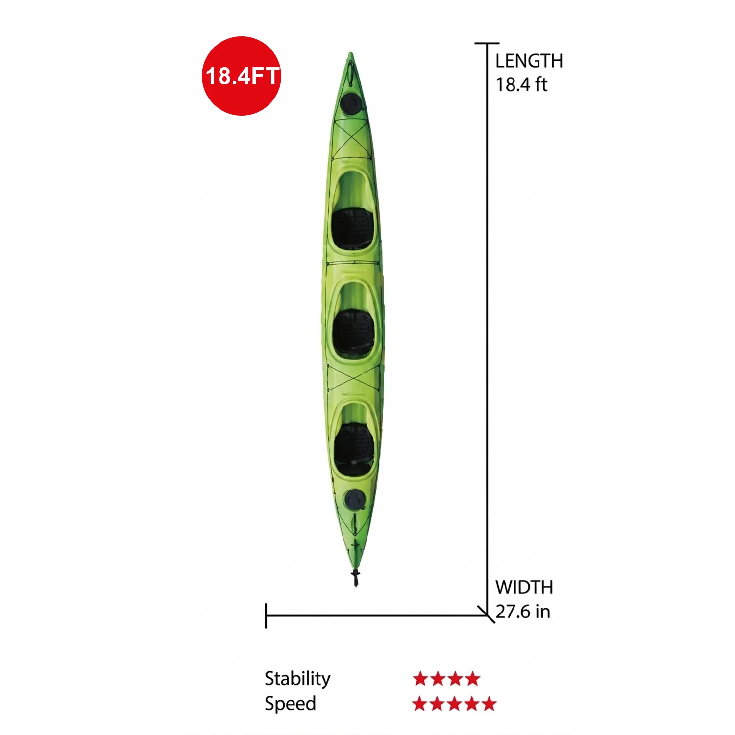 Designed with performance in mind, the YLLO-KAYAK-ALEX challenges the idea that larger kayaks are difficult to handle. Despite its size and spacious triple-cockpit layout, its streamlined hull allows it to cut through the water smoothly, operating dexterously and fast. It is the perfect vessel for touring and exploring, offering unparalleled performance without sacrificing comfort.