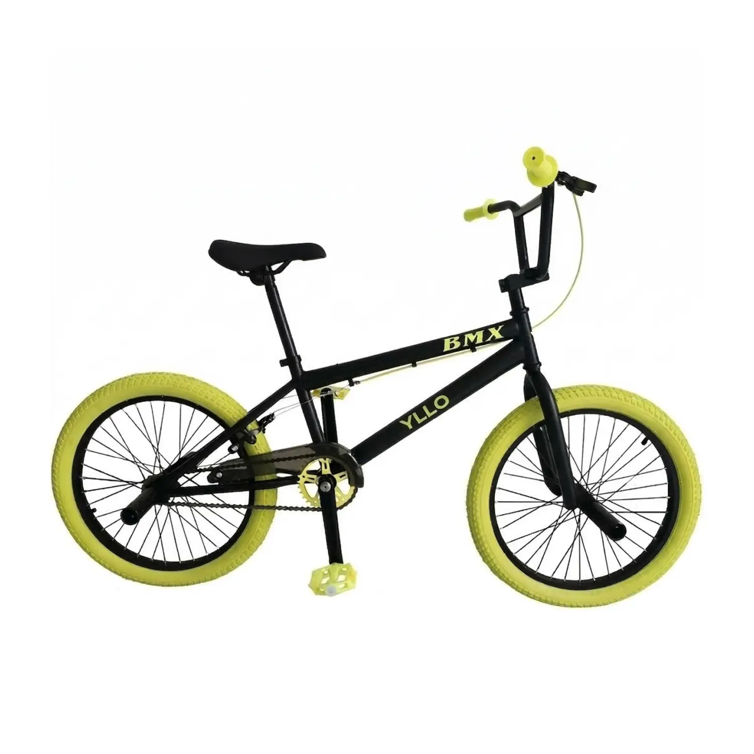 The YLLO-VELO-KB44 is a high-performance, 20-inch kids’ bike that blends the iconic toughness of a BMX machine with the safety and comfort required for growing riders. Built around a robust high-tensile steel frame, this model is designed for young adventurers who want a bike that looks as fast as it feels—whether they are cruising the neighborhood or trying out their first small jumps at the local park.