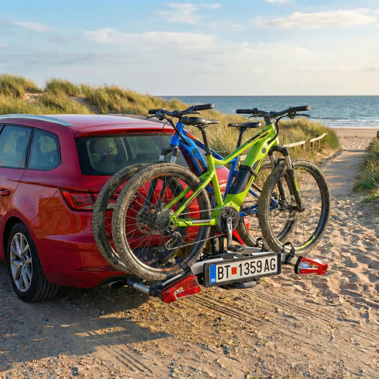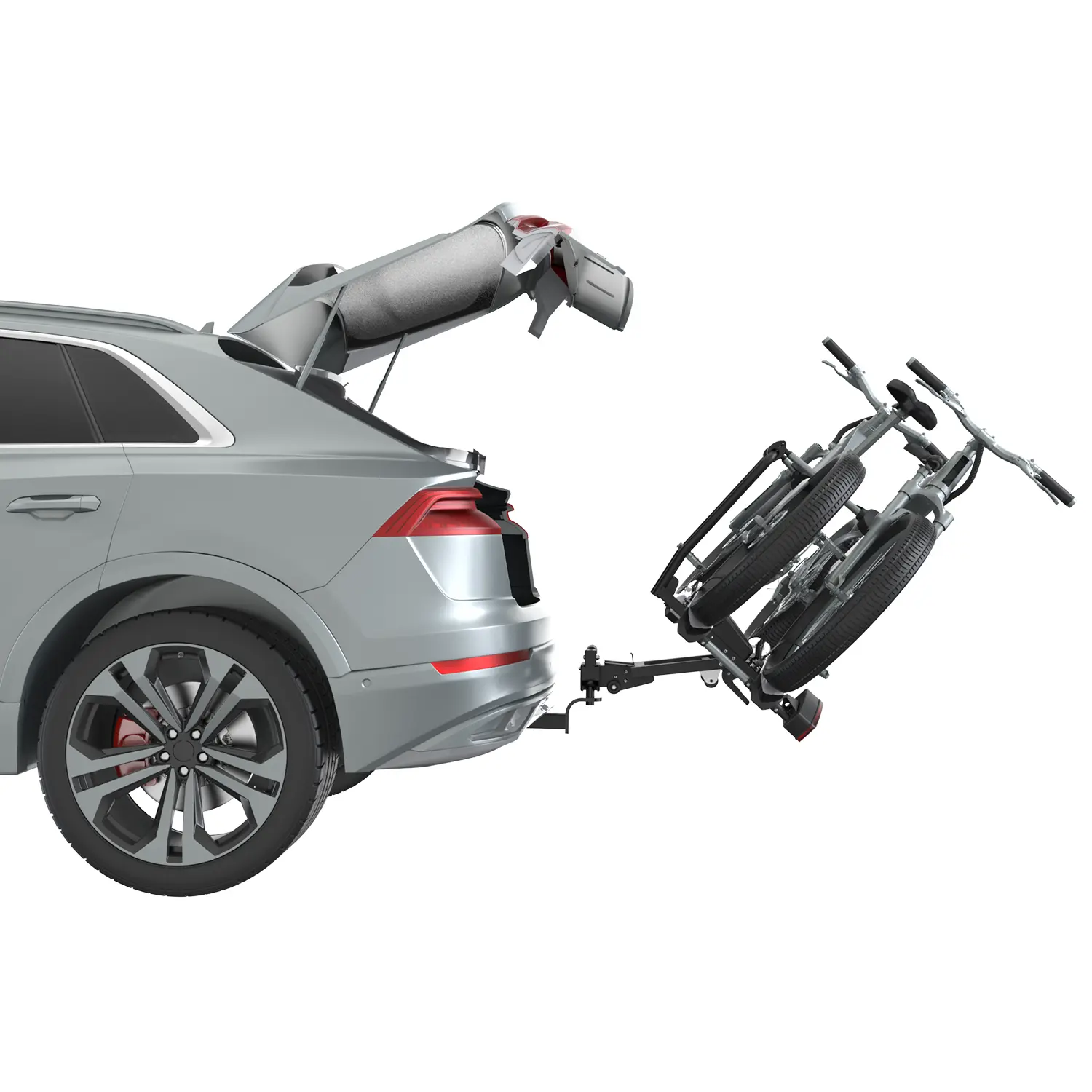 Transport your bikes securely and stylishly with our premium towbar-mounted platform rack. Designed for convenience, this rack features a smart tilting mechanism that allows you to access your trunk even when bikes are loaded—perfect for road trips and camping adventures.
