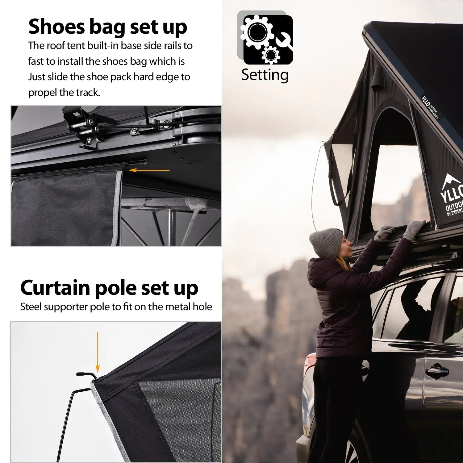 Yllo rooftop tents come in a variety of sizes to fit most vehicles. Our website includes a handy sizing guide to help you choose the perfect tent for your car's roof dimensions and weight capacity.